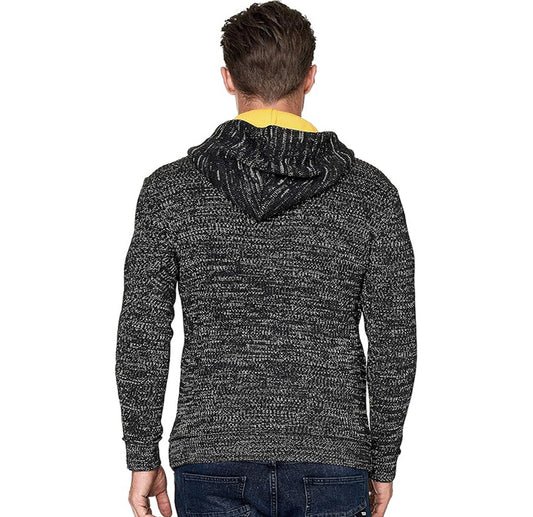 Rusty Neal Herren Strickpullover Kapuzensweatshirt schwarz-gelb