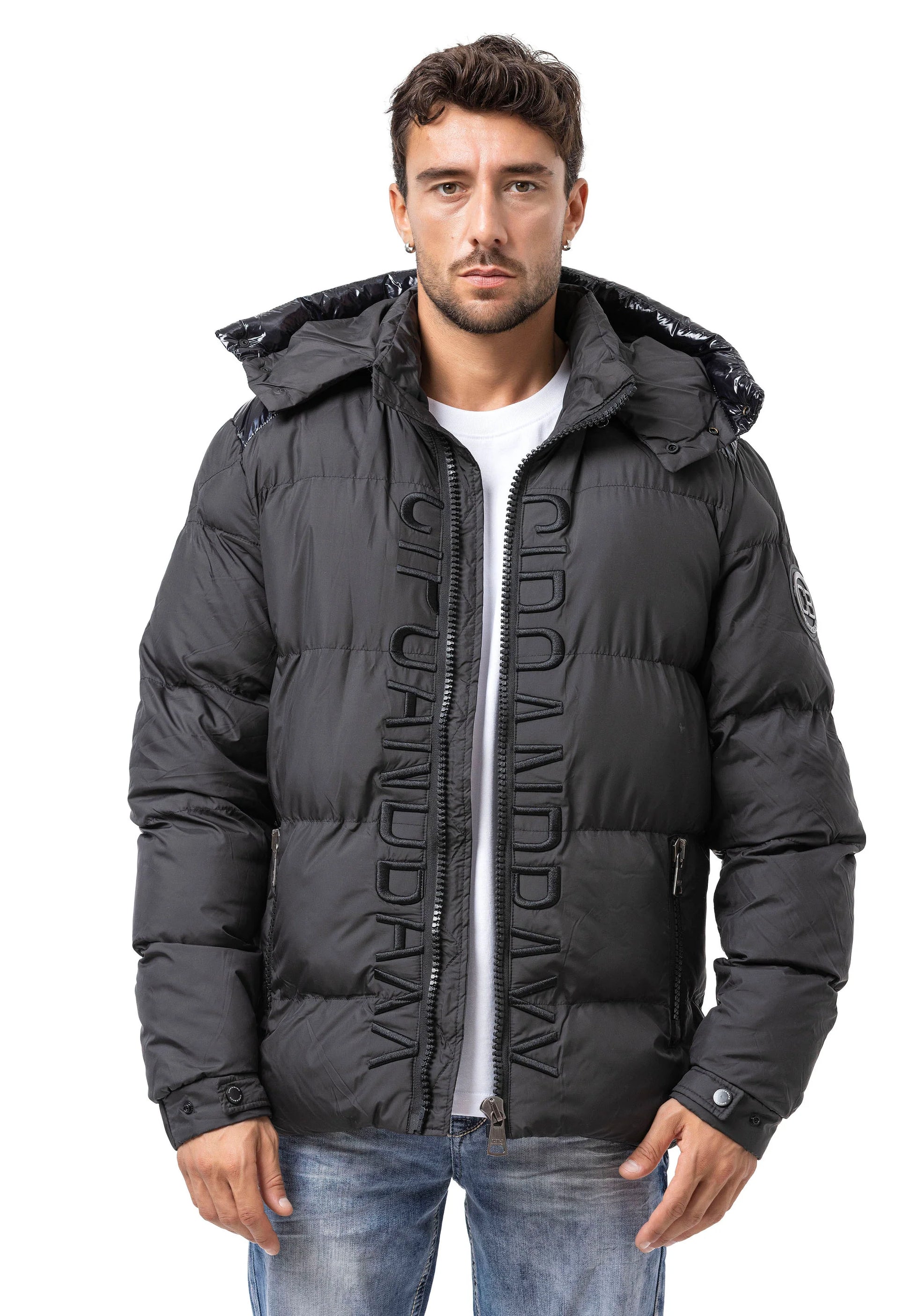 Die CM201 Herren Winterjacke von Cipo & Baxx überzeugt durch ihren sportlich-markanten Look und funktionale Vielseitigkeit. Mit ihrem glänzenden Finish, der abnehmbaren Kapuze und dem vertikalen Marken-Zipper ist sie die ideale Wahl für Männer, die auch bei kaltem Wetter Wert auf Stil und Komfort legen.